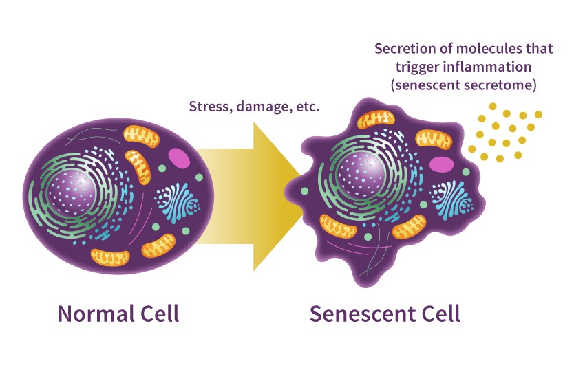 Disease, injury, and other stress factors harm cells throughout our bodies. Ideally, the damaged cells are cleared by our immune system through a process called apoptosis. But as we age, our bodies are no longer as effective at removing dysfunctional cells, contributing to a weakened immune system, cellular aging and lowered vitality.
